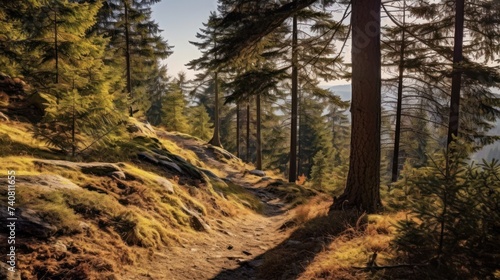 © Zie, Fototapeta premium Beauty of sunrise in the sumava mountains, trees in autumn colors