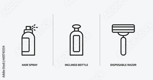 Fototapeta premium beauty outline icons set. beauty icons such as hair spray, inclined bottle, disposable razor vector. can be used web and mobile.