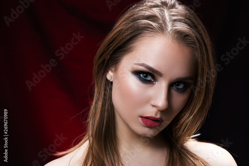 Fototapeta premium Beauty portrait of a beautiful brunette on black background