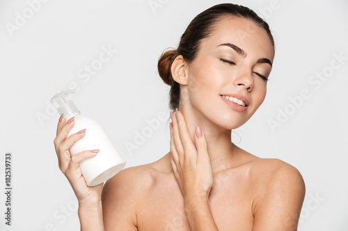 Naklejka premium Beauty portrait of a satisfied beautiful half naked woman