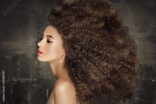 © neonshot, Fototapeta premium Beauty portrait of girl with afro.