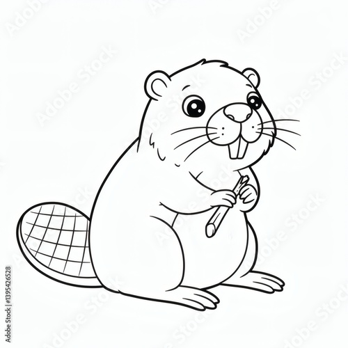 Fototapeta premium Beaver cartoon outline isolated on white background - for coloring page