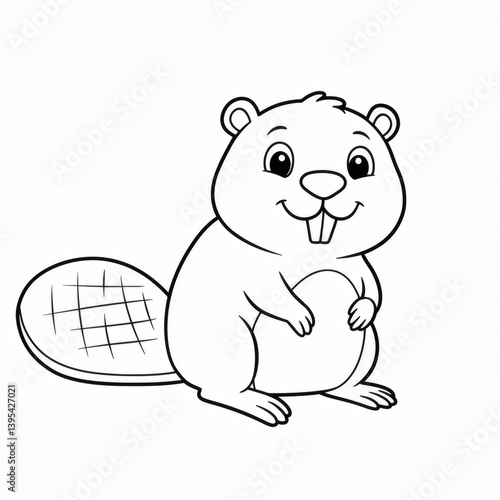 © Reza, Fototapeta premium Beaver cartoon outline isolated on white background - for coloring page