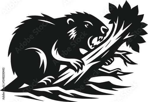 © MstSumi, Obraz premium Beaver cutting through a tree with sharp teeth vector