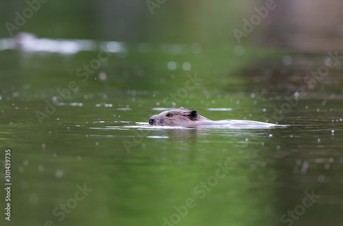 Fototapeta premium Beavers swimming in a lake, north Quebec, Canada.