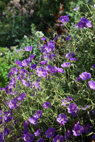 Naklejka premium Bed of Wood Cranesbill flowers, Derbyshire England