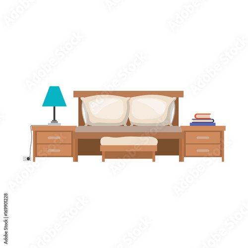 Fototapeta premium bed with nightstand in colorful silhouette on white background