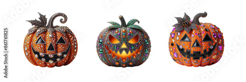 Fototapeta premium Bedazzled spooky pumpkin decoration/ ornament for Halloween, Halloween Day special set of against Transparent background