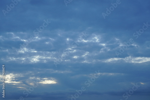 © darknightsky, Fototapeta premium Bedeckter Himmel am Abend mit etwas Sonne, die hindurch scheinen kann