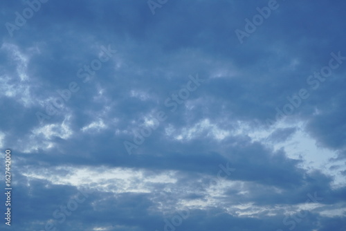 Obraz premium Bedeckter Himmel am Abend mit etwas Sonne und Licht das hindurch scheinen kann