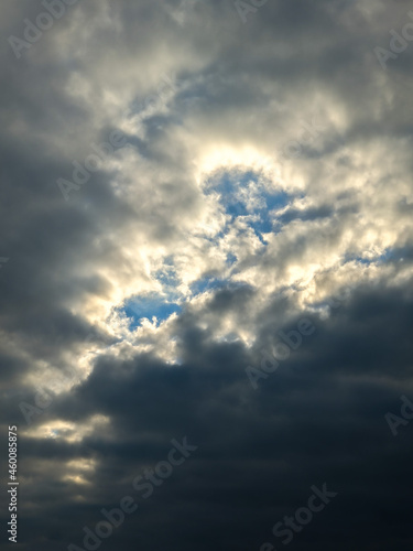 Obraz premium Bedeckter Himmel mit Sonnenstrahlen, die durch die Wolken kommen