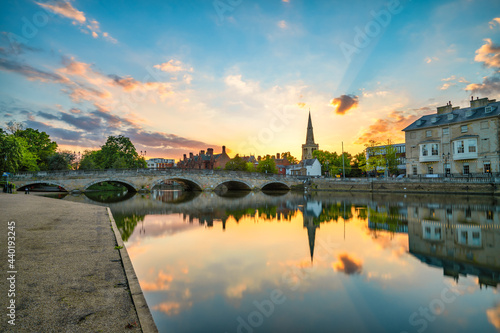 © Pawel Pajor, Fototapeta premium Bedford bridge at sunset with tower of St. Paul's church in the background