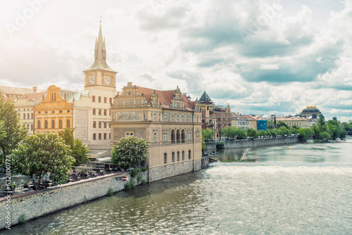 Naklejka premium Bedrich Smetana Museum and Škola paměti on Vltana river, Prague, Czech
