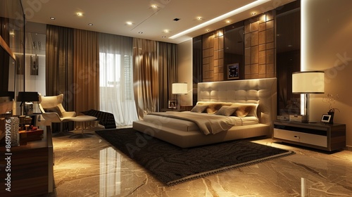 © Joel, Fototapeta premium bedroom modern interior design, luxury hotel room, luxury apartment comfortable suite lounge