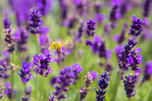 Obraz premium Bee and lavender flowers.