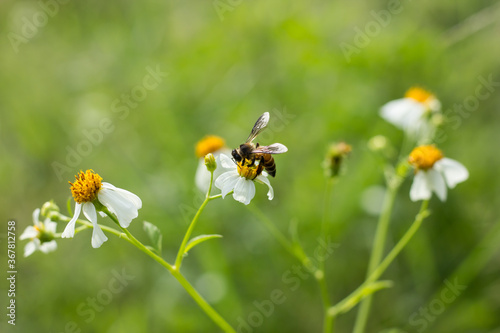 © nitinut380, Obraz premium Bee and small white flower