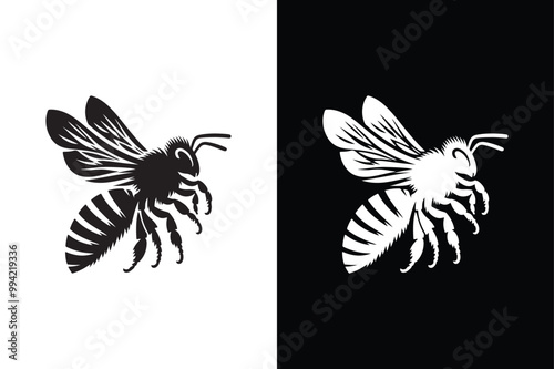© Ali, Obraz premium Bee Beauty in Black And White vector icon.
