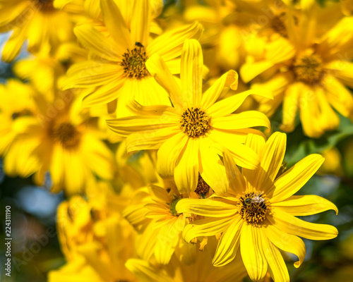 © Arhire Alex, Fototapeta premium Bee collecting polen from yellow flowers