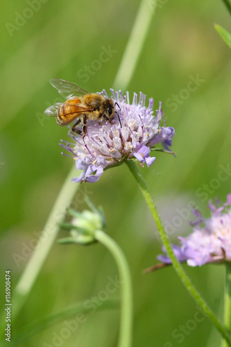 © kautzphoto, Naklejka premium Bee collecting pollen on wildflower
