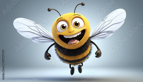 © Nea, Obraz premium Bee 3D cartoon character with big eyes and a smile on its face