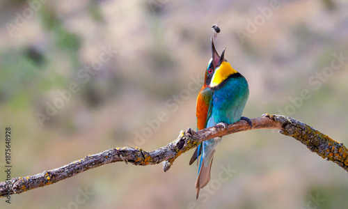 Naklejka premium Bee-eater, Merops apiaster, Mediterranean Forest, Castilla y Leon, Spain, Europe