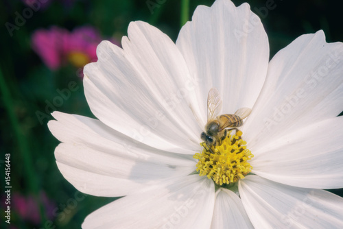 Fototapeta premium bee finds for sweet in white cosmos pollen
