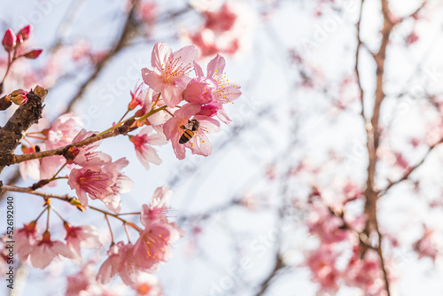© Fernandoramos, Obraz premium bee in cherry blossom performing pollination