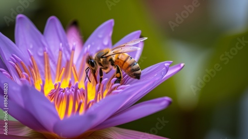 © AlfaSmart, Fototapeta premium Bee landing on a water lily