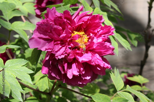 © luckybaby, Fototapeta premium Bee on a bright red flower
