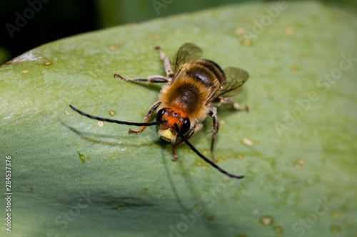 Naklejka premium bee on a leaf
