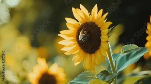 © Ikhsan, Naklejka premium Bee on a Sunflower