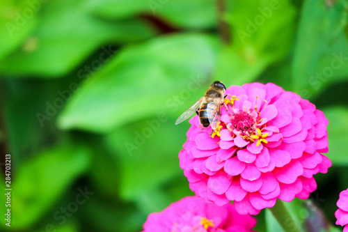 © Sergei Timofeev, Fototapeta premium bee on beautiful pink flower close up