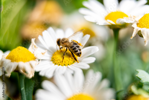 © Barbara, Fototapeta premium Bee on daisy in the garden 1
