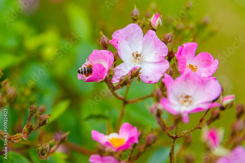 Fototapeta premium bee on pink flowers