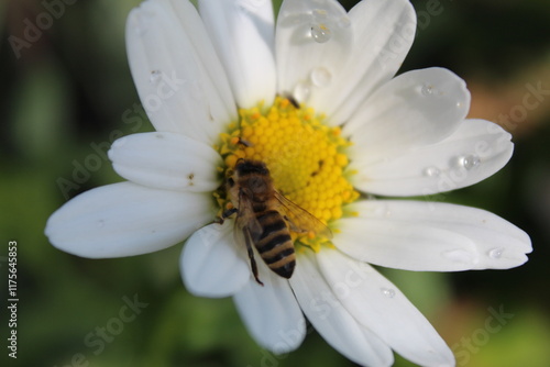 © moon child, Obraz premium bee pollinating a white flower in a summer garden