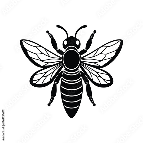 Fototapeta premium Bee silhouette black vector flat illustration. Honey Bee icon,