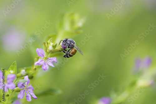 Fototapeta premium Bee sucked sweet nectar from pollen Cuphea hyssopifola flower