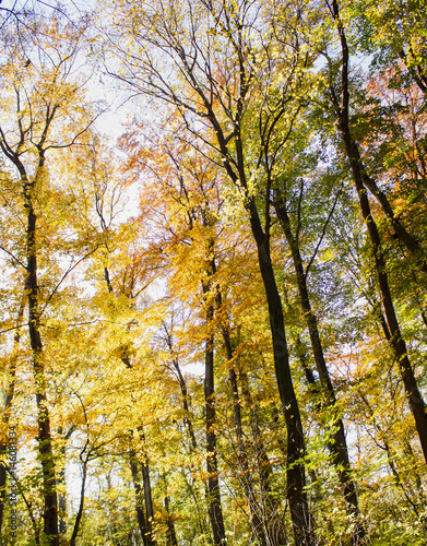 © Svetlana Gajic, Obraz premium Beech forest at autumn upon blue sky