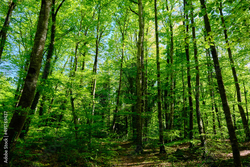 Obraz premium Beech forest in spring in the Fageda d'en Jordà, Girona, Spain