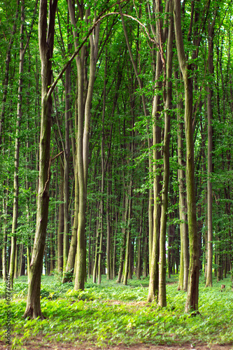 © Angelika Smile, Obraz premium beech tall green trees in summer forest