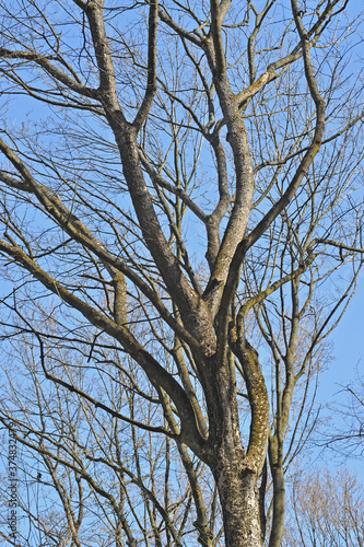 Obraz premium Beech tree in the forest. Blue sky