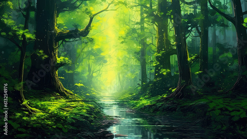 © MdMaruf, Obraz premium Beech Trees Forest in Early Spring, from below. Generative ai