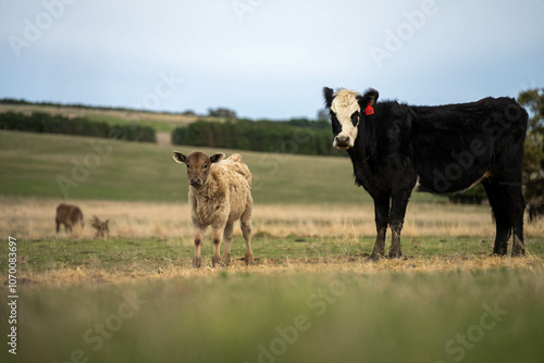 © William, Obraz premium beef cows and calf on a farm eating hay in summer