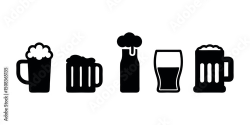 Fototapeta premium Beer Glass and Bottle Silhouettes, Pub & Brewery Vector Icons