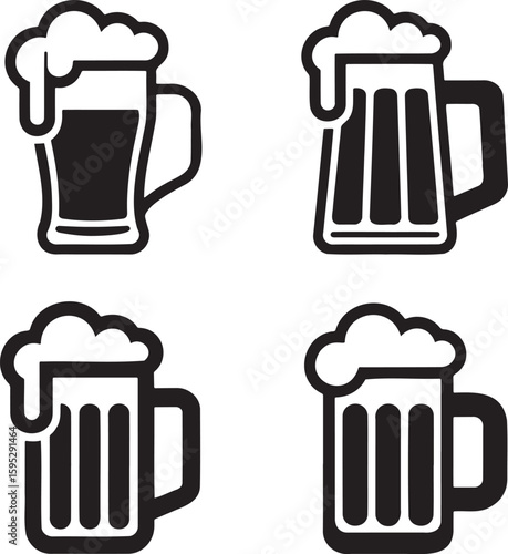 Fototapeta premium Beer mug silhouette set vector illustration isolated On Transparent Background