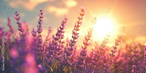 © Soklin, Obraz premium Bees buzzing over vibrant lavender flowers as the sun