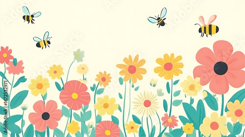 © MASJAB, Obraz premium Bees Flowers Meadow Springtime.
