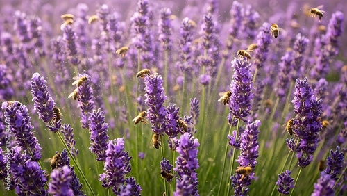 © Md Jahir, Obraz premium Bees Pollinating Vibrant Lavender Flowers in a Sunny Field