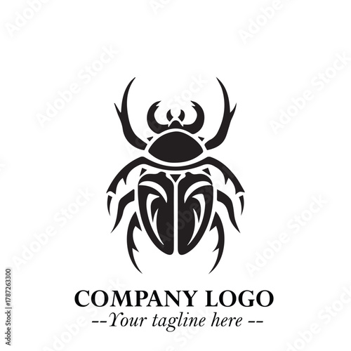 © Gudiwo, Obraz premium Beetle Logo Symbol in Black on the White Background with Simple Modern Insect Design