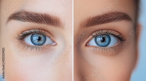 © STwul, Fototapeta premium Before & After Eye Makeup Transformation, Studio Shot, Blue Eyes, Skincare